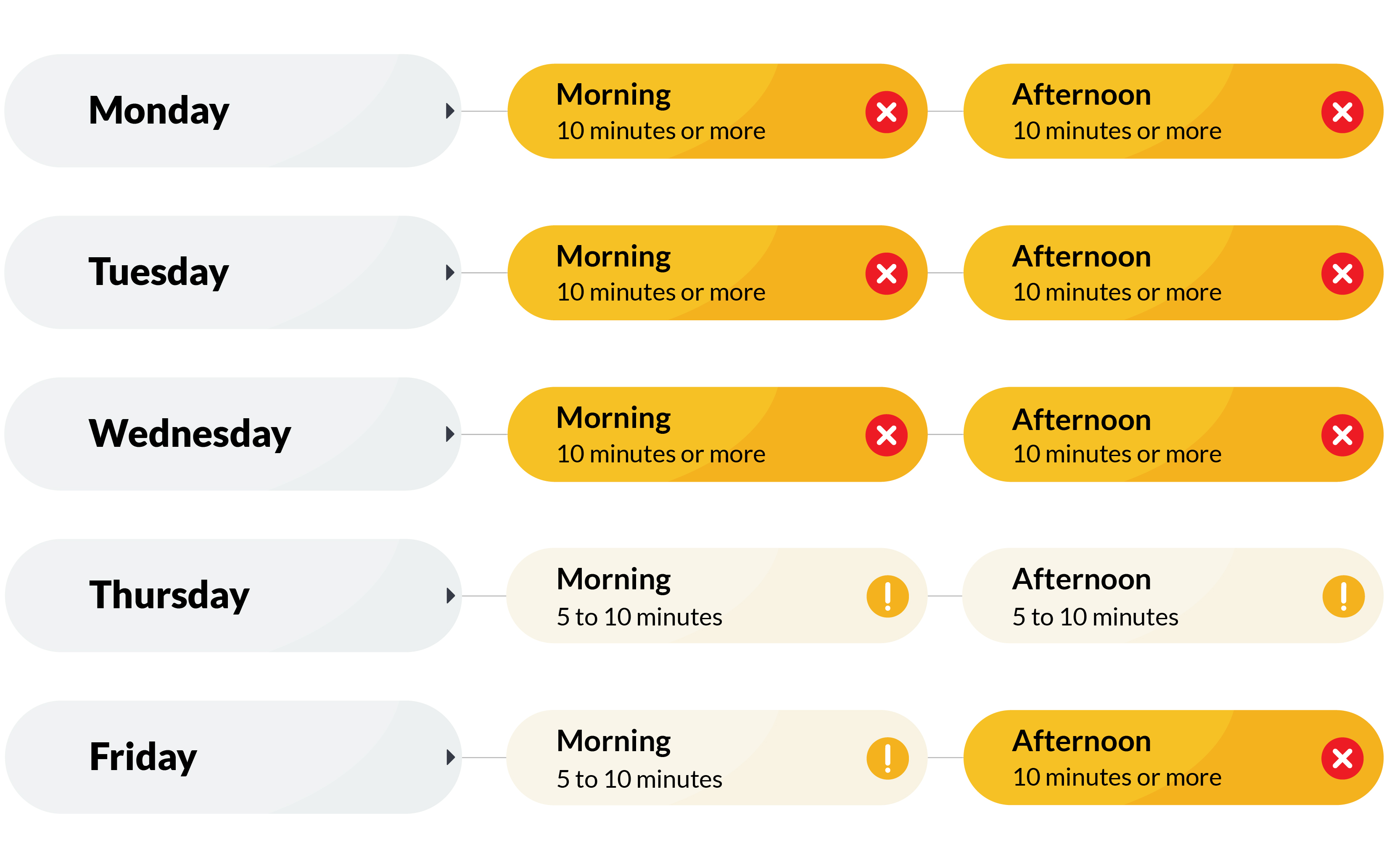 We're sharing some of our recent average call waiting times for each day of the week so you can avoid calling us during busy periods if the issue you want to talk to us about isn't an emergency.